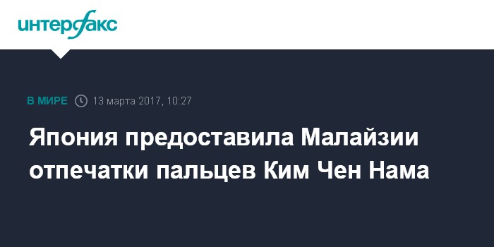 Москва. 13 марта. INTERFAX.RU - Японские власти предоставили властям Малайзии отпечатки пальцев убитого в прошлом месяце в Куала-Лумпур сводного брата главы КНДР Ким Чен Нама, сообщила в понедельник японская газета Nihon Keizai.
