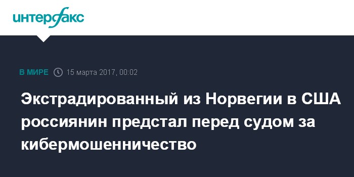 Экстрадированный из Норвегии в США россиянин предстал перед судом за кибермошенничество