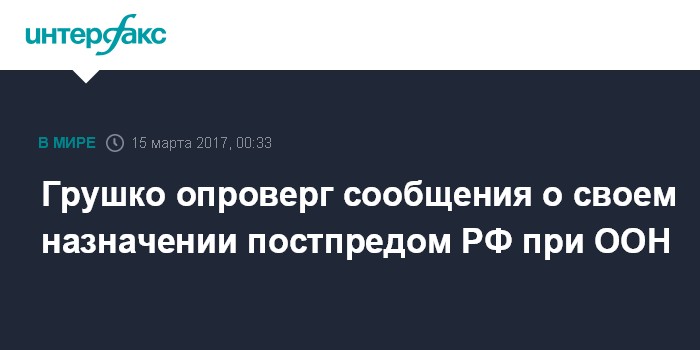Ранее во вторник в ряде СМИ появилась информация, что Грушко может занять пост постпреда России при ООН.