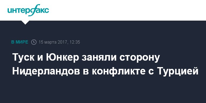 Москва. 15 марта. INTERFAX.RU - Председатель Европейского Совета Дональд Туск выступил в среду в защиту Нидерландов от нападок руководства Турции.