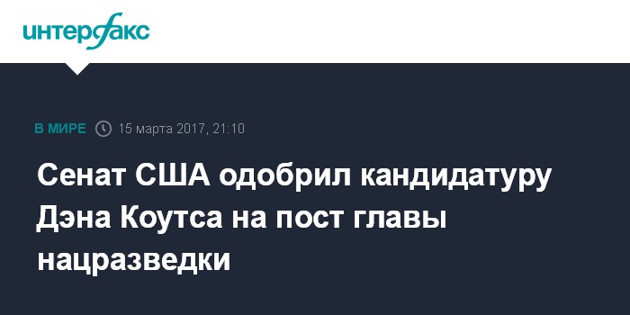 Сенат США одобрил кандидатуру Дэна Коутса на пост главы нацразведки