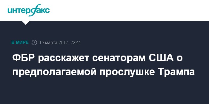 Москва. 15 марта. INTERFAX.RU - ФБР согласилось провести закрытый брифинг для сенаторов, в ходе которого разъяснит, прослушивался ли президент США Дональд Трамп во время его избирательной кампании 2016 года, и если да, то осуществлялось ли это с санкции суда.