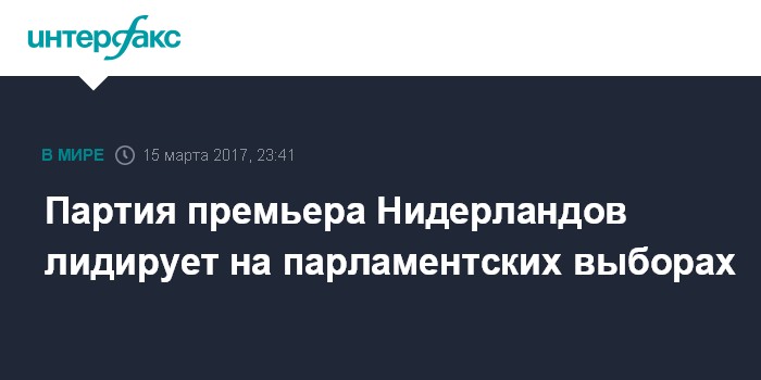 Москва. 15 марта. INTERFAX.RU - Партия действующего премьера Нидерландов Марка Рютте лидирует на парламентских выборах, сообщает в среду вечером агентство Associated Press со ссылкой на результаты опроса на выходе с избирательных участков, проведенного компанией Ipsos.