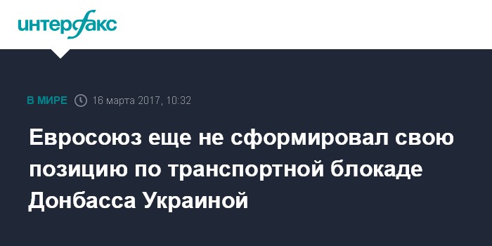 Москва. 16 марта. INTERFAX.RU - Представительство Евросоюза в Украине ждет от местной власти детальную информацию о решении Совета национальной безопасности и обороны (СНБО) от 15 марта о прекращении перевозки грузов через линию разграничения в Донбассе, чтобы в Брюсселе смогли выработать свою позицию по этому вопросу, сообщил глава представительства Хьюг Мингарелли.