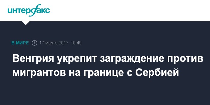 Москва. 17 марта. INTERFAX.RU - Венгрия к концу мая завершит строительство второй линии заграждений на границе с Сербией, которые призваны обезопасить страну от новой волны иммигрантов, сообщил в пятницу в эфире местного радио глава венгерского правительства Виктор Орбан.