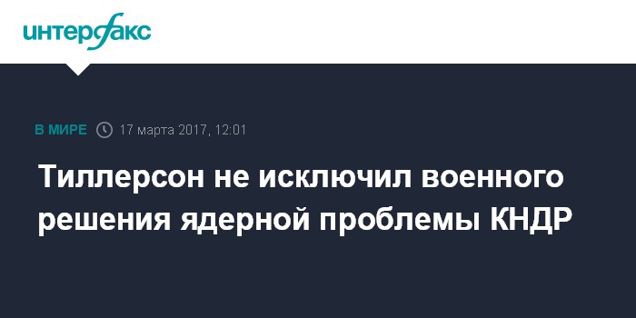 Москва. 17 марта. INTERFAX.RU - Госсекретарь США Рекс Тиллерсон заявил, что все варианты, включая военное решение, остаются актуальными для США в решении ядерной проблемы КНДР, сообщает в пятницу южнокорейский телеканал YTN.