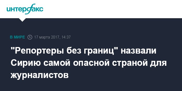 Москва. 17 марта. INTERFAX.RU - Сирия остается самой опасной для журналистов страной в мире, говорится в докладе "Репортеров без границ".