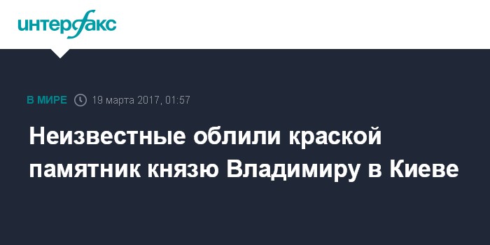 Москва. 19 марта. INTERFAX.RU - Неизвестные облили красной краской памятник князю Владимиру Великому в украинской столице Киеве.