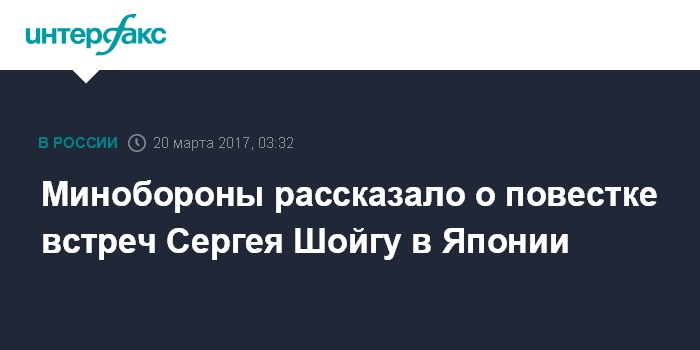 По его словам, во время пребывания в японской столице Шойгу "намерен провести отдельную двустороннюю встречу с министром обороны Японии Томоми Инадой".