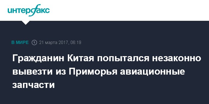 Москва. 21 марта. INTERFAX.RU - Таможенники в Приморье изъяли несколько коробок с авиационными запчастями у гражданина Китая, выезжавшего из России через пункт пропуска Пограничный, сообщила во вторник пресс-служба Уссурийской таможни.