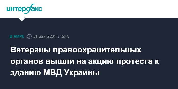 Москва. 21 марта. INTERFAX.RU - В Киеве возле здания министерства внутренних дел Украины ветераны правоохранительных органов во вторник проводят акцию с требованием повышения социального обеспечения.