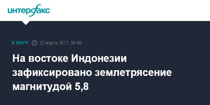 На востоке Индонезии зафиксировано землетрясение магнитудой 5,8