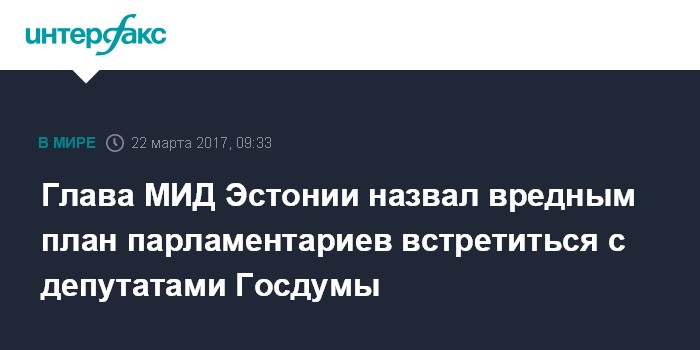 Глава МИД Эстонии назвал вредным план парламентариев встретиться с депутатами Госдумы