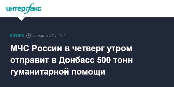 МЧС России в четверг утром отправит в Донбасс 500 тонн гуманитарной помощи