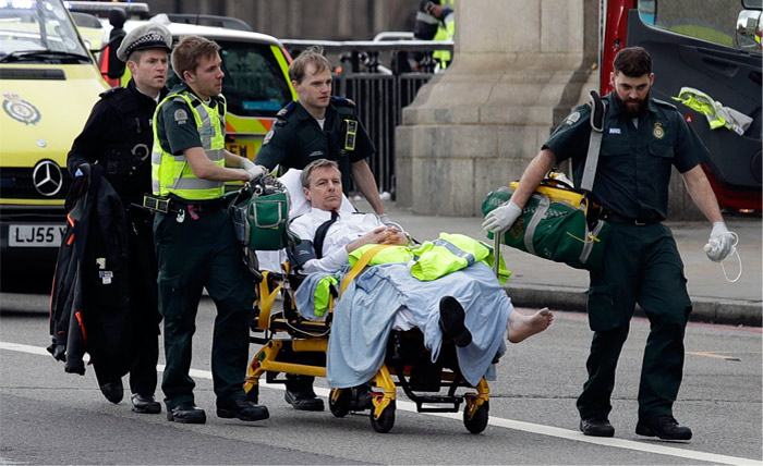 Как сообщил представитель лондонской полиции, по предварительной информации, злоумышленник был один. Находясь за рулем легкового автомобиля, он сбил прохожих на Вестминстерском мосту, который ведет к комплексу зданий парламента. Среди пострадавших на мосту трое офицеров полиции.