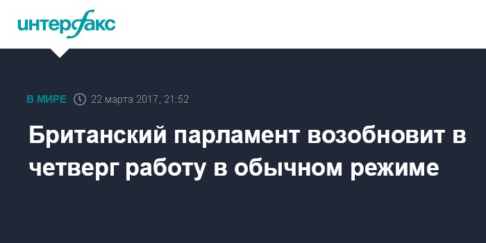 Москва. 22 марта. INTERFAX.RU - Депутаты обеих палат парламента Великобритании в четверг продолжат работу в обычном режиме, сообщает британский телеканал Sky News со ссылкой на представителей парламента.