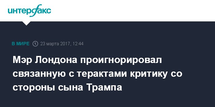 Мэр Лондона проигнорировал связанную с терактами критику со стороны сына Трампа