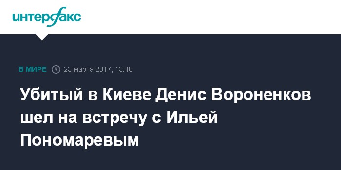 Москва. 23 марта. INTERFAX.RU - Бывший депутат Госдумы РФ Денис Вороненков, который был убит ранее в четверг в центре Киева, шел на встречу с другим бывшим депутатом Госдумы Ильей Пономаревым. Об этом последний сообщил у себя в фейсбуке.