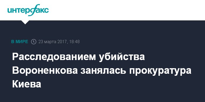 Москва. 23 марта. INTERFAX.RU - Материалы уголовного производства об убийстве экс-депутата Государственной Думы РФ Дениса Вороненкова поступили в прокуратуру Киева, сообщили в пресс-службе Генеральной прокуратуры Украины