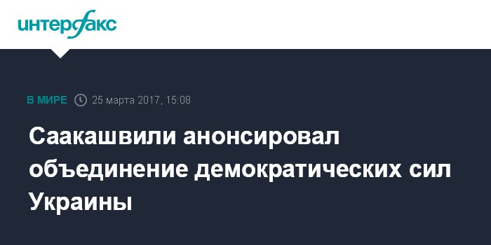 Москва. 25 марта. INTERFAX.RU - Лидер партии "Рух новых сил", экс-глава Одесской областной государственной администрации Михаил Саакашвили заявил о планах объединения ряда демократических политических сил и о возможности досрочных выборов на Украине уже в нынешнем году.