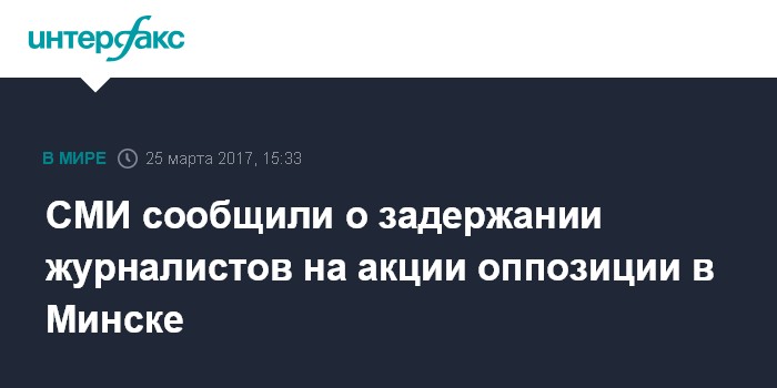 Москва. 25 марта. INTERFAX.RU - В ходе несанкционированной акции оппозиции "День воли" в Минске задержаны журналисты, освещавшие мероприятие.