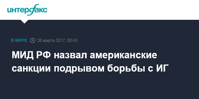 Москва. 26 марта. INTERFAX.RU - Введение новых санкций США в отношении российских организаций подрывает перспективы сотрудничества в борьбе с ИГИЛ (запрещена в РФ).