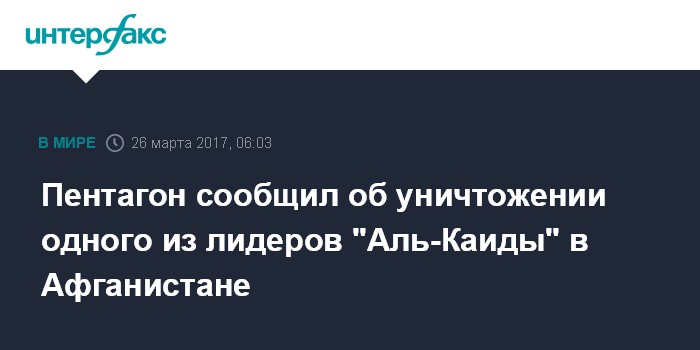 Москва. 26 марта. INTERFAX.RU - Кари Ясин - один из главарей "Аль-Каиды" (запрещенной в РФ террористической организации - ИФ) - был уничтожен в Афганистане в ходе авианалета американских ВВС, сообщил Пентагон.