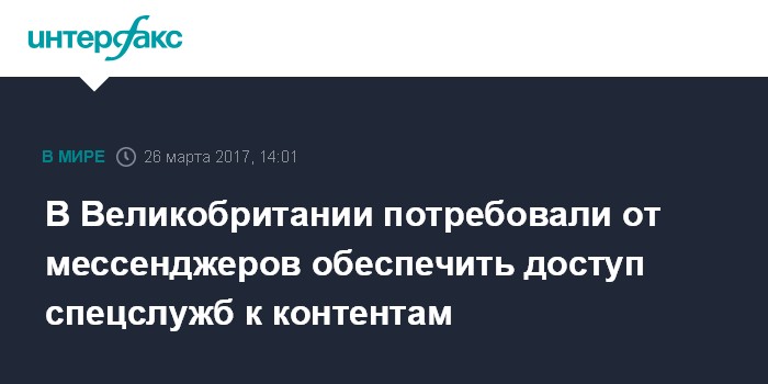 Москва. 26 марта. INTERFAX.RU - WhatsApp и другие системы текстовых сообщений должны предоставить доступ к своим контентам специальным службам, потребовала министр внутренних дел Великобритании Эмбер Радд.