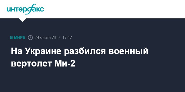 Москва. 26 марта. INTERFAX.RU - Украинский военный вертолет Ми-2В упал в воскресенье в районе населенного пункта Малиновка, расположенном недалеко от Краматорска (Донецкая область), экипаж погиб, сообщает пресс-служба Минобороны Украины.