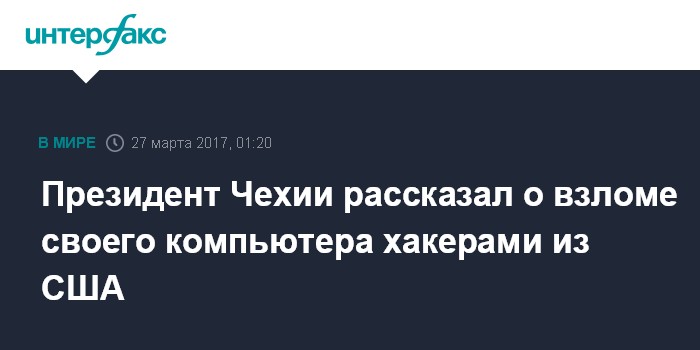 Москва. 27 марта. INTERFAX.RU - Президент Чехии Милош Земан рассказал о взломе его компьютера американскими хакерами, сообщает в воскресенье Frekvence-1.