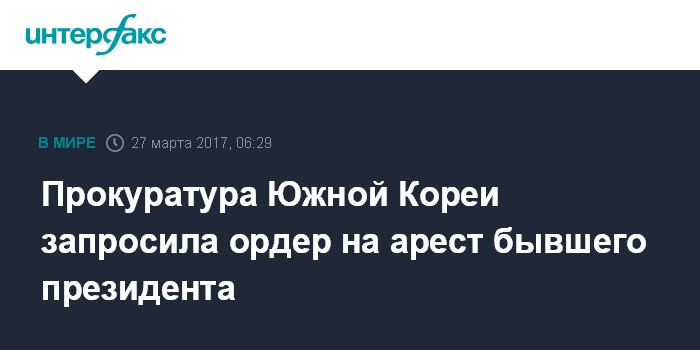 Москва. 27 марта. INTERFAX.RU - Прокуратура Южной Кореи запросила ордер на арест бывшего президента страны Пак Кын Хе на основании обвинений в коррупции, которые стали причиной ее отставки, сообщает в понедельник агентство "Рёнхап".