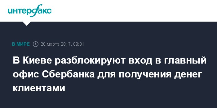 В Киеве разблокируют вход в главный офис Сбербанка для получения денег клиентами