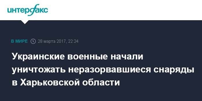 Москва. 28 марта. INTERFAX.RU - Военнослужащие Вооруженных сил Украины приступили к уничтожению боеприпасов, собранных на территории воинской части и города Балаклея Харьковской области в рамках ликвидации последствий чрезвычайного происшествия на арсенале-65.