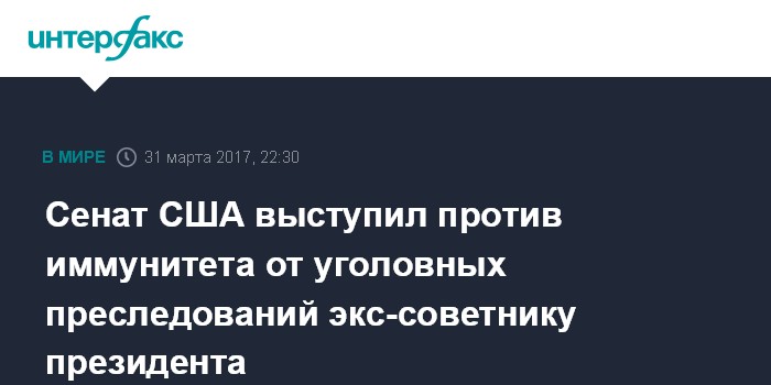 Сенат США выступил против иммунитета от уголовных преследований экс-советнику президента
