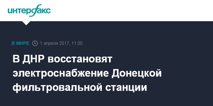 Москва. 1 апреля. INTERFAX.RU - Работы по восстановлению электроснабжения Донецкой фильтровальной станции (ДФС) и ее запуску будут проводиться в субботу.
