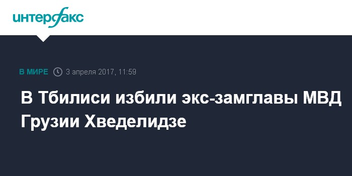 Москва. 3 апреля. INTERFAX.RU - Двое неизвестных в масках в понедельник в Тбилиси напали на бывшего заместителя министра внутренних дел Грузии Гелу Хведелидзе, сообщают местные СМИ.