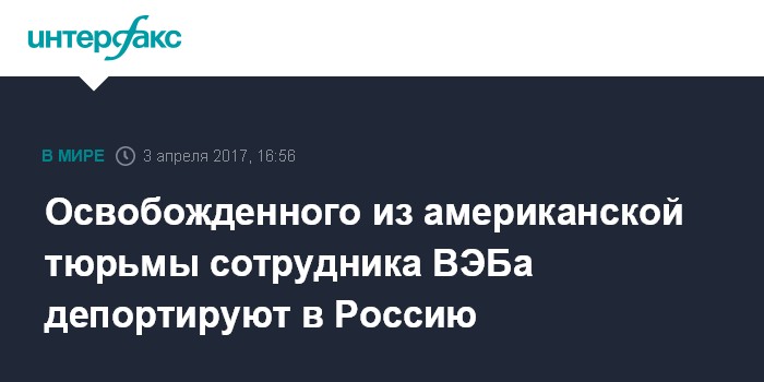 Освобожденного из американской тюрьмы сотрудника ВЭБа депортируют в Россию