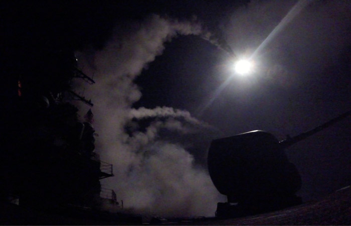 В ночь на четверг 59 "Томагавков" были выпущены с военных кораблей США в Средиземном море по базе сирийской правительственной армии в Хомсе. В сообщениях американских официальных лиц отмечается, что удар был нанесен по аэродрому, с которого взлетали самолеты сирийских ВВС, использовавшиеся для применения, по мнению Вашингтона, химического оружия. Также сообщалось, что базу могли использовать российские военные. В Пентагоне заявили, что за два часа до атаки предупредили о ней Россию.