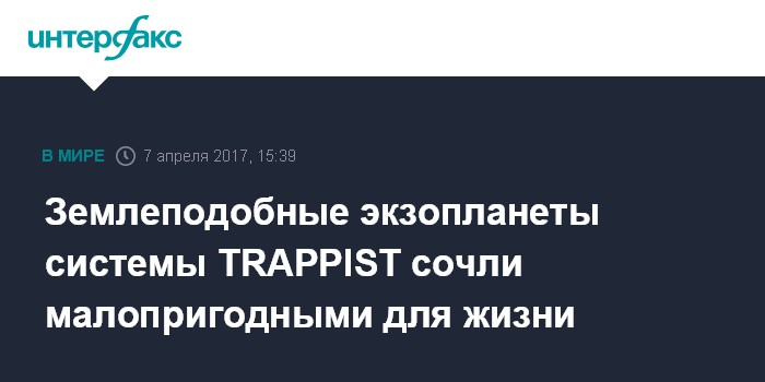 Землеподобные экзопланеты системы TRAPPIST сочли малопригодными для жизни