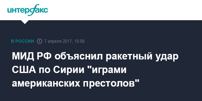 МИД РФ объяснил ракетный удар США по Сирии "играми американских престолов"