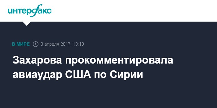 Москва. 8 апреля. INTERFAX.RU - Удар США по Сирии не имеет отношения к стратегии, это попытка самоутвердиться в условиях жесткой внутриполитической борьбы, сообщила официальный представитель МИД РФ Мария Захарова в прямом эфире программы "Вести в субботу" с Сергеем Брилевым на телеканале "Россия 1" (ВГТРК).