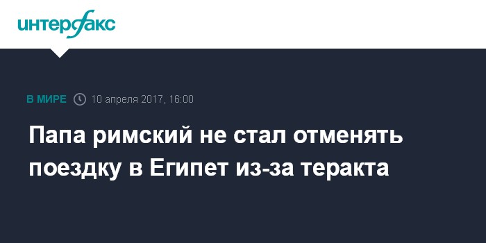 Папа римский не стал отменять поездку в Египет из-за теракта
