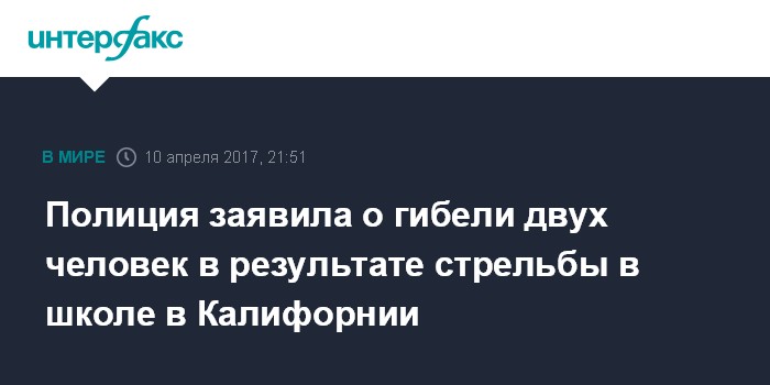 Москва. 10 апреля. INTERFAX.RU - Два человек стали жертвами стрельбы, открытой в одной из школ города Сан-Бернардино (штат Калифорния), сообщает CNN со ссылкой на полицию.