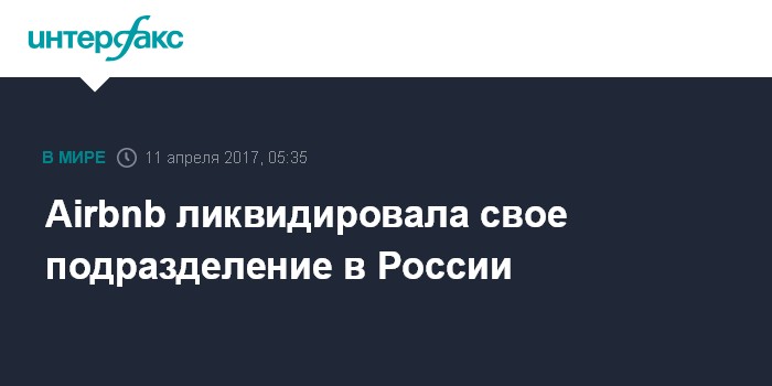 Москва. 11 апреля. INTERFAX.RU - Американский сервис для бронирования отпускного жилья Airbnb ликвидировал свое дочернее подразделение в России, сообщает во вторник "Коммерсант". Причиной этого решения могло стать нежелание компании предоставлять властям сведения об арендодателях, не платящих налоги за сдачу квартир, отмечает издание.