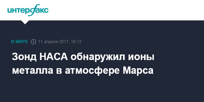 Москва. 11 апреля. INTERFAX.RU - Орбитальный зонд НАСА Maven обнаружил ионы металла в атмосфере Марса.