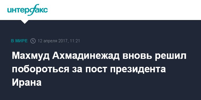 Ранее Ахмадинежад заявлял, что не намерен выдвигать свою кандидатуру на пост президента, так как руководитель Исламской республики аятолла Али Хаменеи посоветовал ему не участвовать в выборах. Во вторник официальные иранские СМИ сообщили, что в Иране началась регистрация кандидатов в президенты.