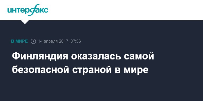 Москва. 14 апреля. INTERFAX.RU - Эксперты Всемирного экономического форума (ВЭФ) назвали Финляндию самой безопасной страной в мире, следует из публикации на сайте швейцарской неправительственной организации.