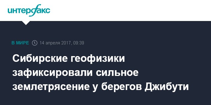 Сибирские геофизики зафиксировали сильное землетрясение у берегов Джибути