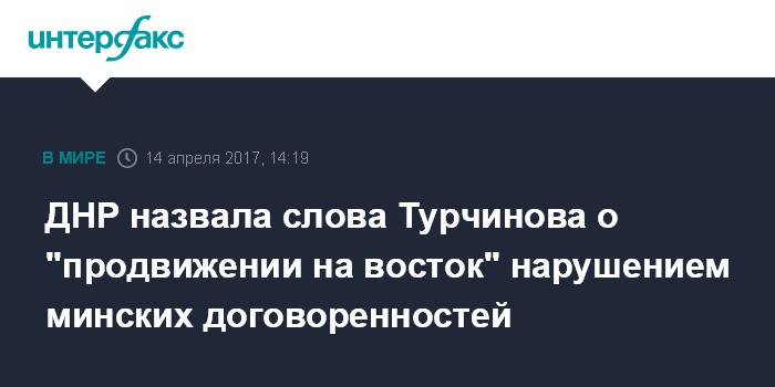 Москва. 14 апреля. INTERFAX.RU - Секретарь Совета национальной безопасности и обороны Украины Александр Турчинов, заявив о "продвижении на восток", открыто нарушил минские договоренности об урегулировании ситуации в Донбассе, заявил заместитель командующего оперативным командованием самопровозглашенной Донецкой народной республики Эдуард Басурин.