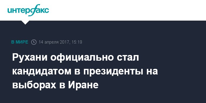Москва. 14 апреля. INTERFAX.RU - Президент Ирана Хасан Рухани зарегистрировался в качестве кандидата на президентские выборы, передает в пятницу телеканал Press TV.